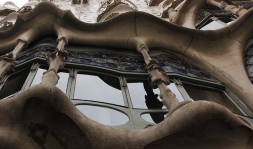 Casa Batllo is one of our Gaudi favorites and is one of his most recognizable works. It is an example of Catalan Modernisme – which loosely translates into “Spanish version of Art Noveau.” Surprisingly, it’s a re-model. He took a perfectly normal middle-class 4-story building and turned it into “Casa Dels Ossos” (or “House of Bones” because the exterior looks skeletal, with skull-like balconies).